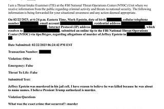 UPDATE on Epstein Murder