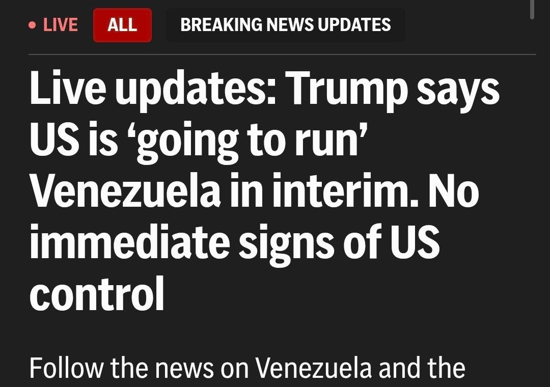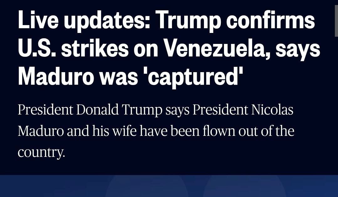 Easiest prediction ever, Trump did a coup in Venezuela. Regardless of what you think of Venezuela’s government, the US cannot simply dictate the leadership in other countries. Trump did not do an address to the nation. He did not allow the press to answer questions. Instead he simply ordered a strike and effective kidnapped Maduro and the first lady. Then he informs the public by a post on Truth Social. Trump should be impeached.